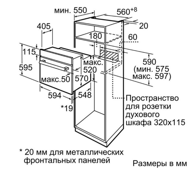 • Размеры ниши для встраивания (ВхШхГ): 575 мм - 597 мм x 560 мм - 568 мм x 550 мм